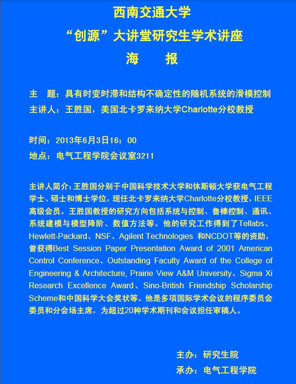 西南交通大学“创源”大讲堂研究生学术讲座