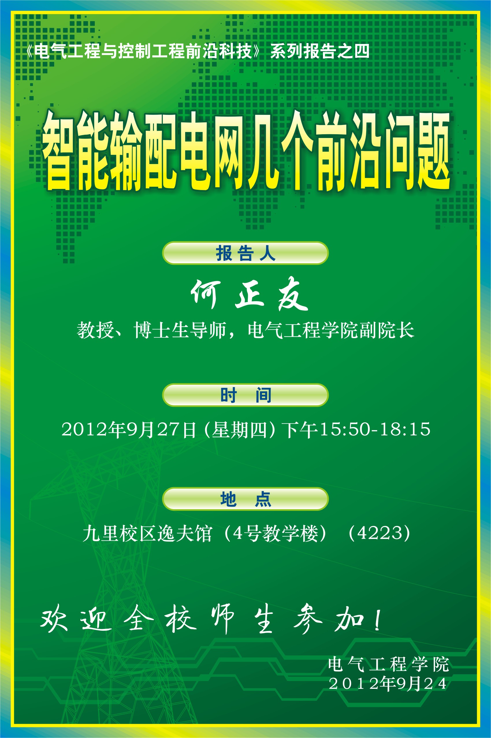 《电气工程与控制工程前沿科技》系列报告之四--智能输配电网几个前沿问题