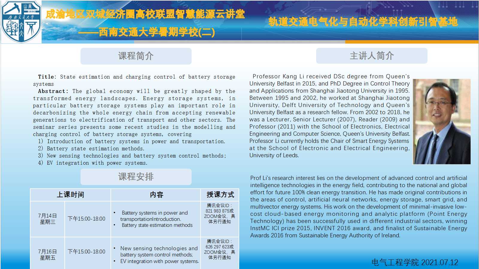 成渝地区双城经济圈高校联盟智慧能源云讲堂——西南交通大学暑期学校(二)