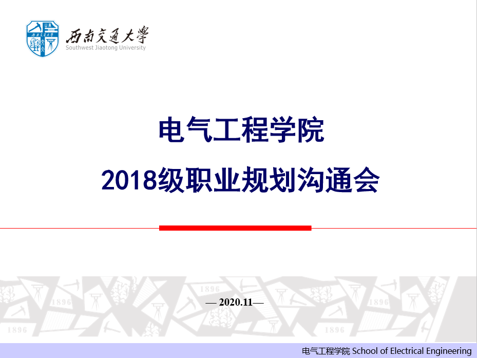 2020年11月15日20时,西南交通大学电气工程学院本科2018级年级大会暨2018级职业规划沟通会于钉钉会议正式召开,大会由辅导员林静英主持。本次会议分为三个部分,第一部分为2018级及往届基本情况,第二部分为毕业去向类型及说明,第三部分为日常事务。