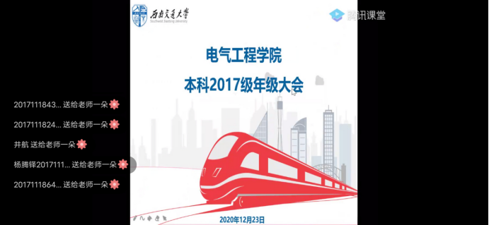 2020年12月23日19时,西南交通大学电气工程学院本科2017年级级大会于腾讯课堂正式召开,大会由辅导员张异主持,本次会议共分为五个部分。