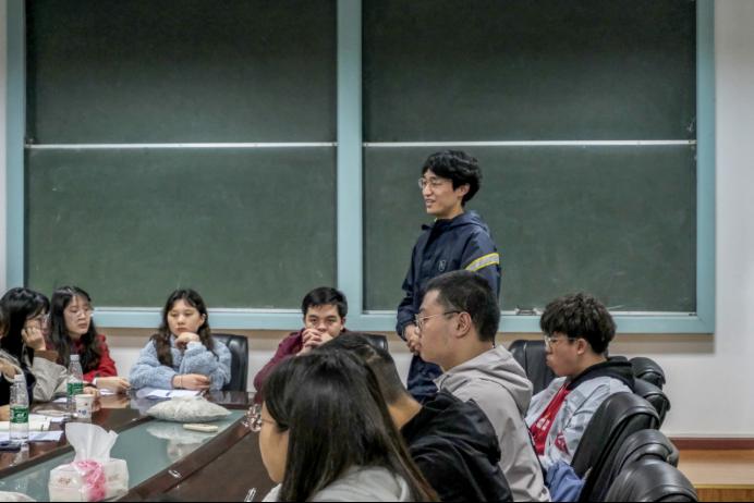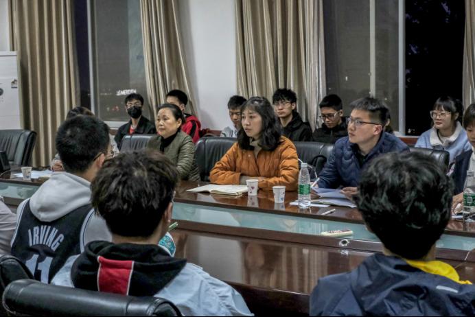 随后的师生交流环节中,各班班委踊跃发言,描述本班学习情况、生活情况,分享班级经验同时借鉴好的管理办法。各班班委主要从班级文化建设、学风建设、寝室文化、生活设备设施等方面展开交流。谢力、关怀、樊芝菱、黄建辛、周佳分别从不同方面分析问题的共性与个性,提出解放问题的方向、关键与具体方案。