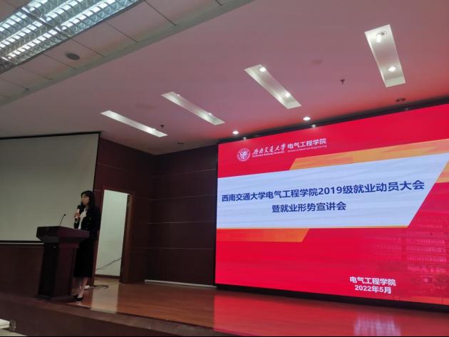 2022年5月19日16时,电气工程学院2019级就业动员大会暨就业形势宣讲会于犀浦校区四食堂三楼320室举行。本次活动邀请学院党委书记罗乾超、学校招生就业处副处长黄春蓉、学院党委副书记谢力、2022届辅导员林静英为同学们分析最新就业形势,旨在帮助2019级的同学们能够更好地了解目前的就业形势,做出正确的选择。本次大会由学院党委谢力副书记主持。