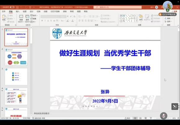 2022年9月5日21时,电气工程学院召开“做好生涯规划,当优秀学生干部”辅导培训会。本次教育以线上会议的方式进行,学院团委书记张异老师主讲。