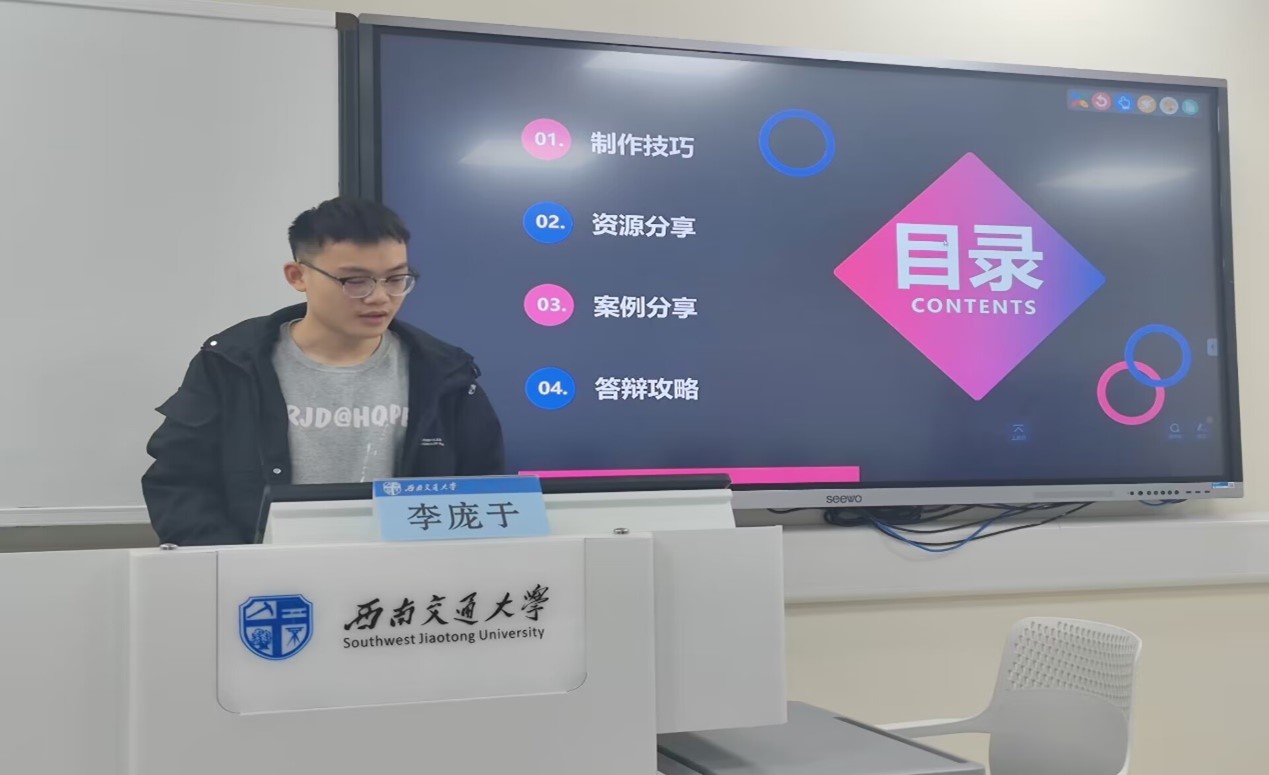 紧接着,李庞于会长就一些优秀案例进行分析,并对答辩方式作了分享,为同学们提供了宝贵经验。