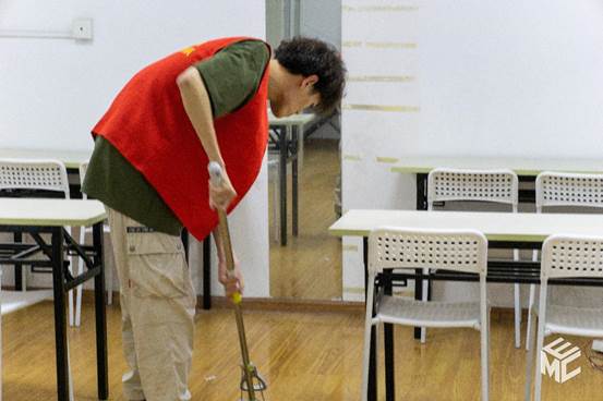 活动当天,志愿者们早早来到宿舍自习室,合理分工,将新生宿舍自习室打扫整洁,为即将到来的新同学营造良好的学习环境,提供最贴心的保障和呵护。