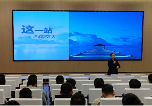 首先,高飞老师从“我从哪里来?“”我到哪里去?“ 两个问题引入,启发新生对大学成长道路的思考。高飞老师在轻松幽默的互动中告诉每一位同学都要从不同的过去前往各异的未来,而在西南交大停留的四年,将成为关联过往与未来的重要一站。高飞老师与各位同学一起回忆了见到交大时的第一印象,想西门而觉庄重大气、忆犀湖而觉温馨浪漫、思教室而觉严谨专业。高飞老师鼓励大家积极探索交大、感受大学生活的丰富多彩。