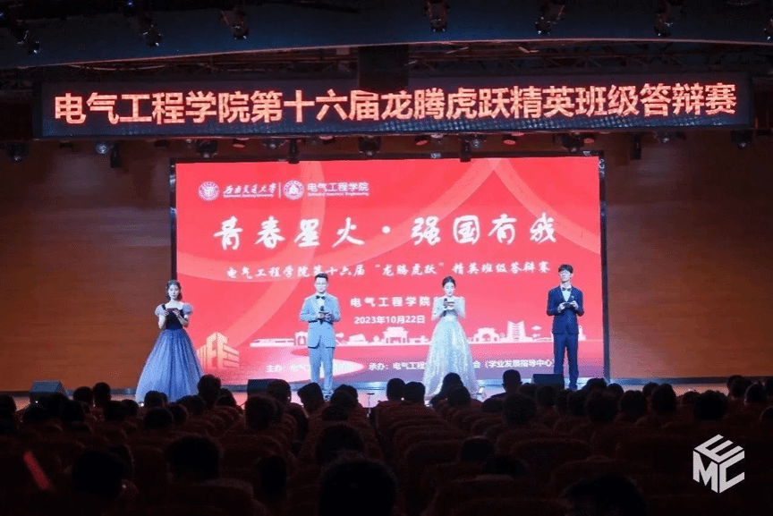 20231022日晚19时,由电气工程学院团委主办,电气工程学院班级联合会(学业发展指导中心)承办的电气工程学院第十六届“龙腾虎跃”精英班级答辩赛在犀浦校区二食堂三楼大学生活动中心正式拉开帷幕。电气工程学院党委书记王斌,未来技术研究院院长吴广宁,学院党委副书记谢力,副院长陈民武、胡海涛,入围班级班导师及各年级辅导员出席答辩赛现场。同时,学院本科2023级全体新生班委来到答辩现场,向参加答辩赛的18个优秀班级学习宝贵经验。
