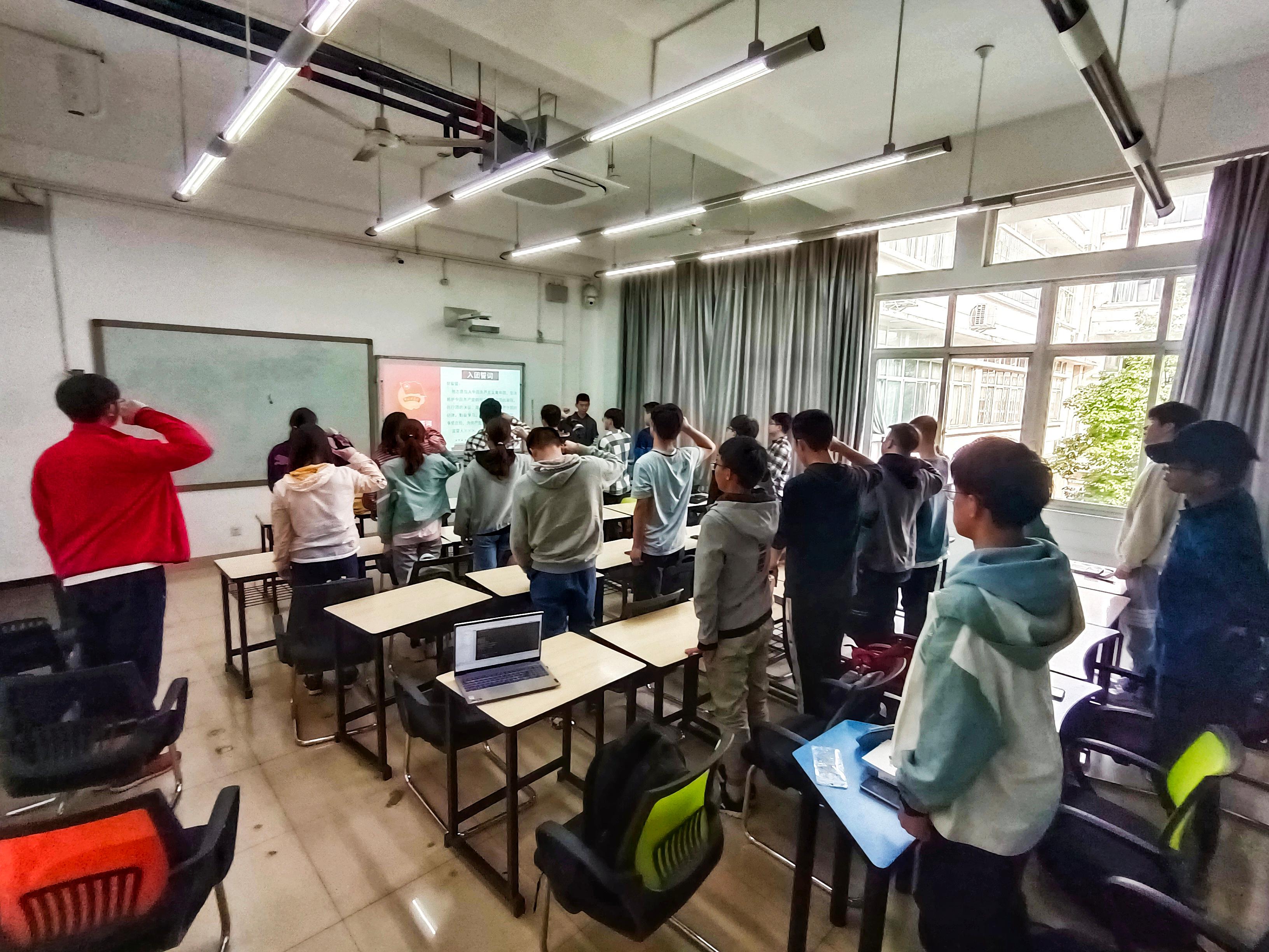 此外,全体团员还重温了入团誓词,同学们纷纷表示,要牢记历史,不忘初心,严格要求自己,做一名优秀的共青团员,为共产主义事业奋斗终身。