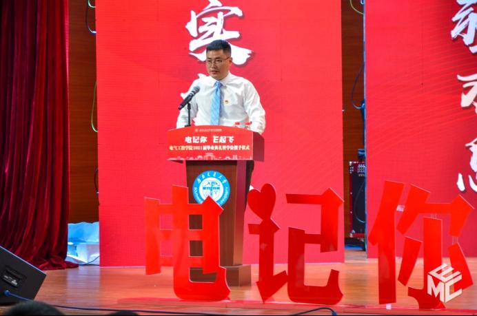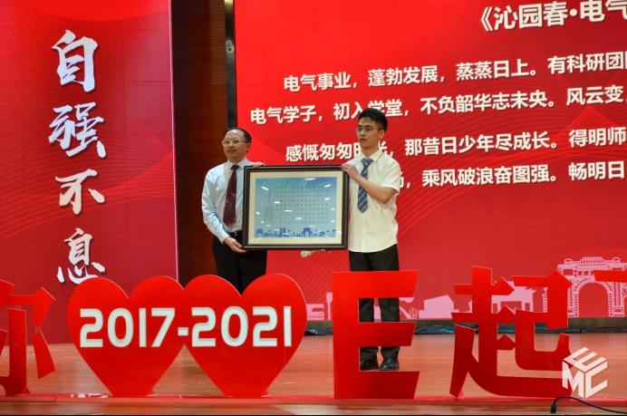 Students of the 2017 Class, Wang Yan, Wang Yiyun, Wang Haowen and Wang Xueqi spoke on behalf of the graduates, expressing their deep gratitude to the faculty members, academic staff and all those who had helped them during the four years of care and love. After that, Zhao Zuwen, a representative of the graduates, gave a gift to the college, wishing the prosperous development of the electrical business.