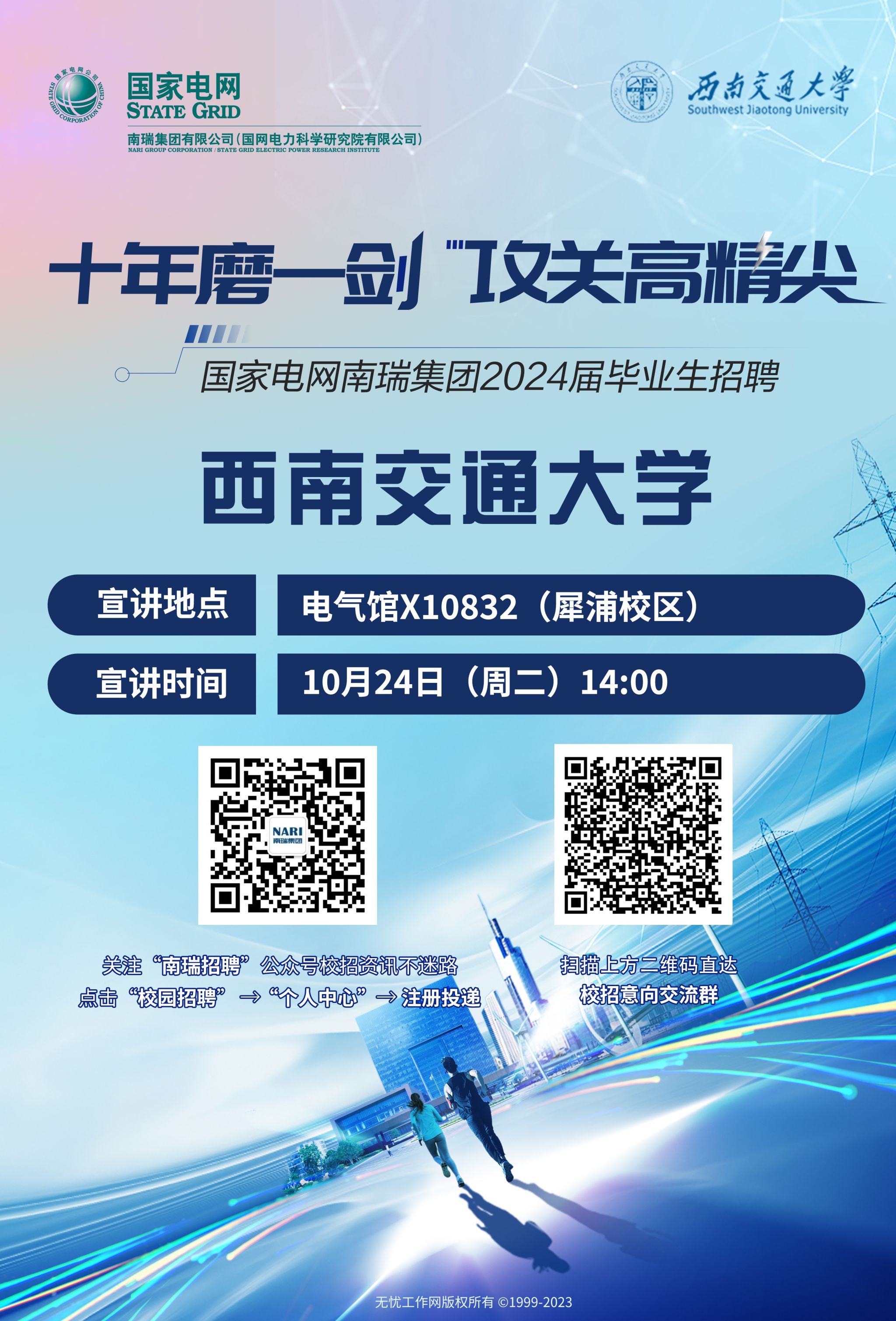 【专场招聘会】国家电网南瑞集团有限公司西南交通大学电气工程学院2024校园专场