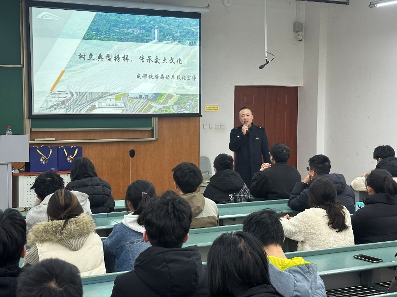 为搭建在校生与行业一线优秀校友的沟通桥梁,传承竢实扬华、自强不息的交大精神,12月4日下午,西南交通大学电气工程学院党员发展服务中心在犀浦校区X4156教室成功举办树立典型榜样,传承交大文化——与轨道交通建设一线优秀校友对话活动。本次活动邀请到成都铁路局动车段高级动车组机械师、西南交通大学“青年讲师团”成员张宏伟校友担任主讲嘉宾,60余名来自不同学院、不同年级的在校本科生参与活动。