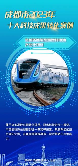 2024年3月14日,在成都市中试平台服务供需对接暨科技成果转化十大榜单发布会上,成都市2023年十大科技成果转化案例正式揭晓,电气工程学院共两项科技成果入选,分别是“荣创新能氢能源燃料电池产业化项目”和“轨道交通同相供电关键技术成果转化”。