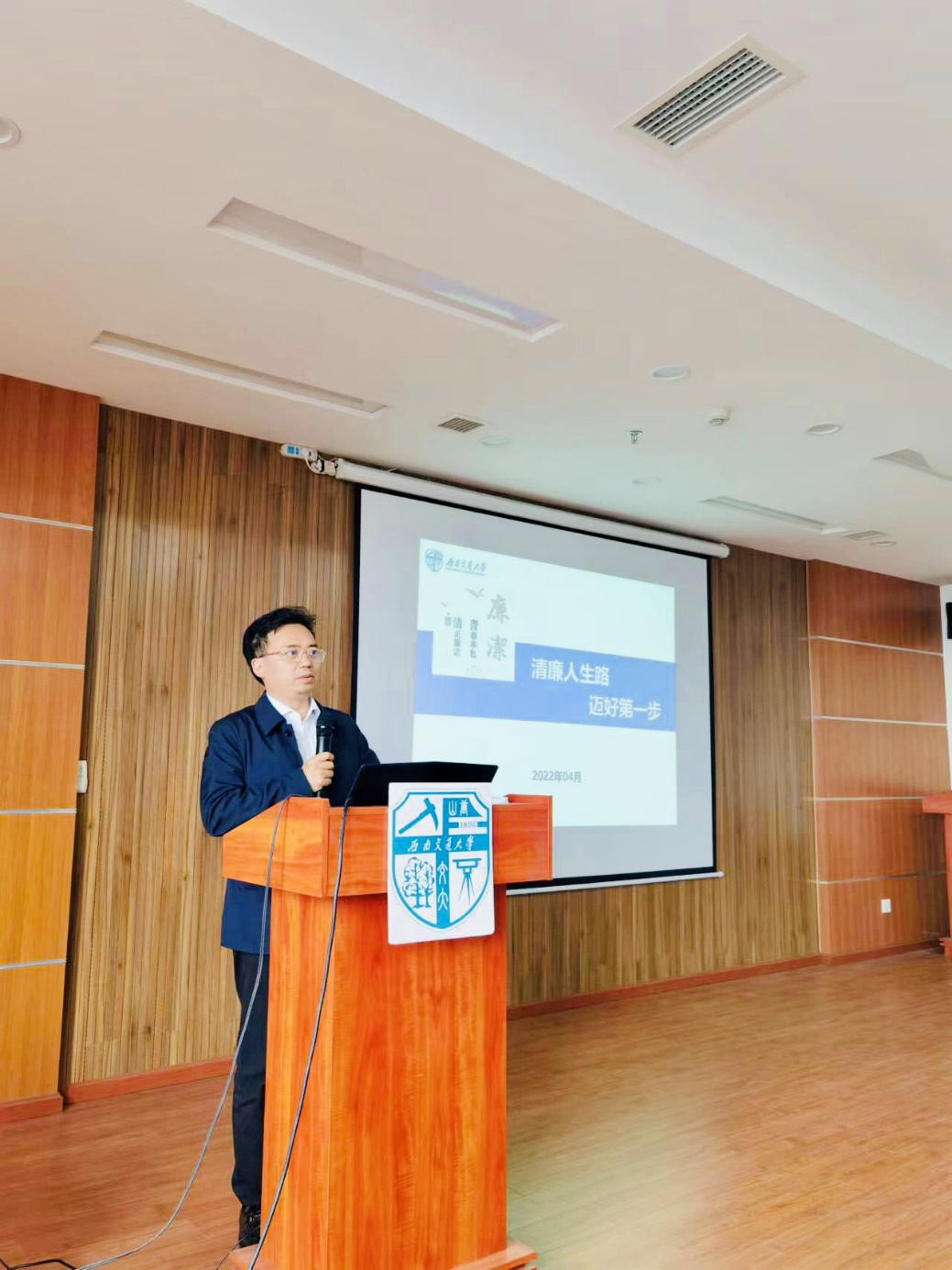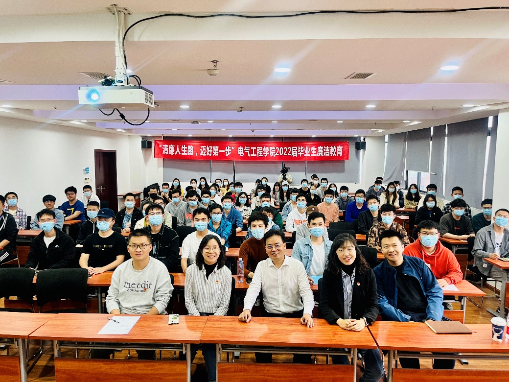 2022414日下午14:30,学校党委副书记、纪委书记张学龙在犀浦校区电气馆X10832为电气工程学院2022届毕业年级学生党员代表讲授《清廉人生路,迈好第一步》专题党课。党课由学院党委副书记谢力主持。