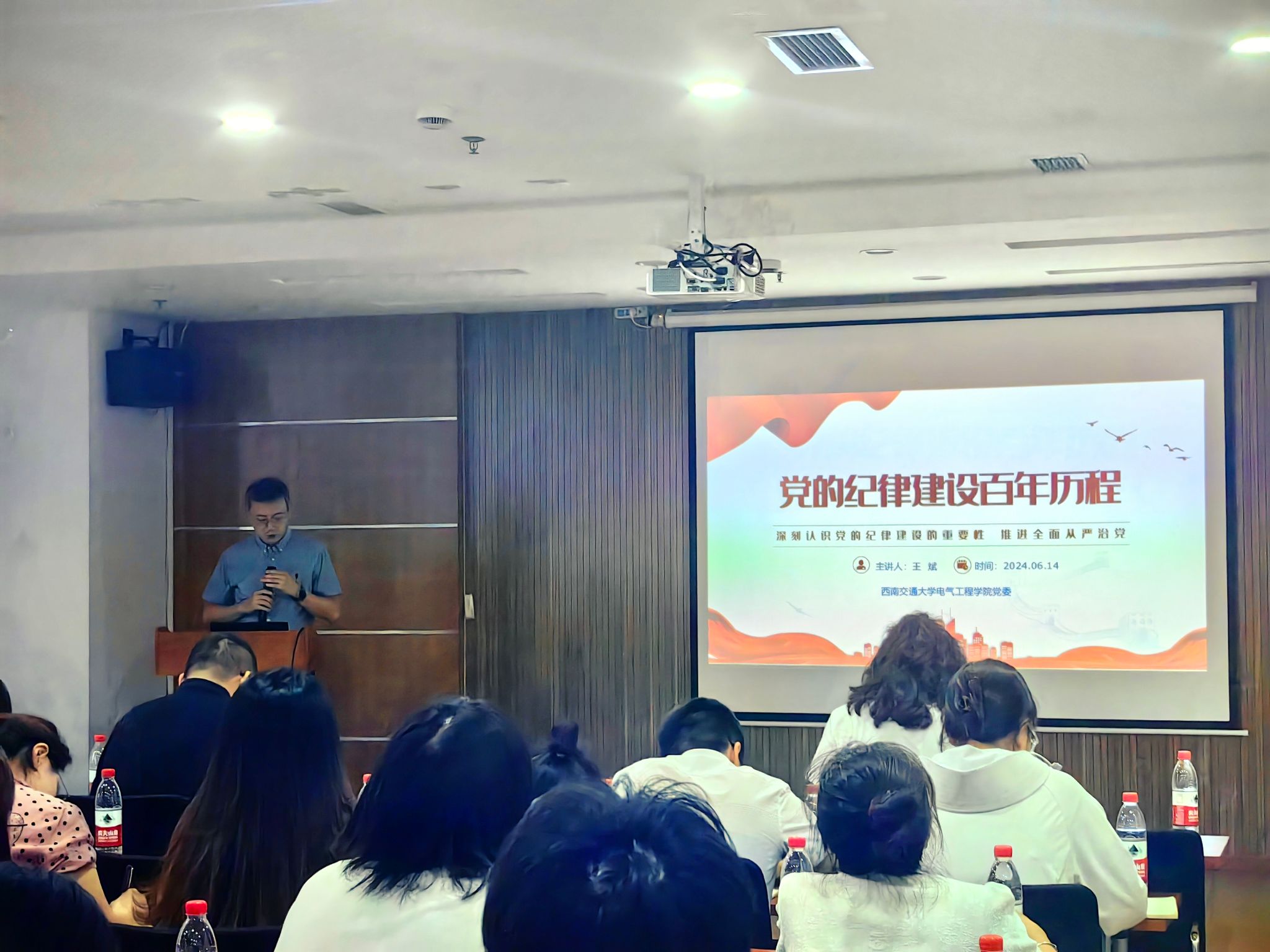 为了进一步推进党纪学习教育走深走实,引导师生党员做到学纪、知纪、明纪、守纪,6月14日下午,电气工程学院组织开展“学条例 守党纪 强党性”主题党日活动,党委书记王斌为师生党支部讲授纪律专题党课。学院党委副书记谢力、全体教职工党支部委员、学生党支部书记等参加了学习。