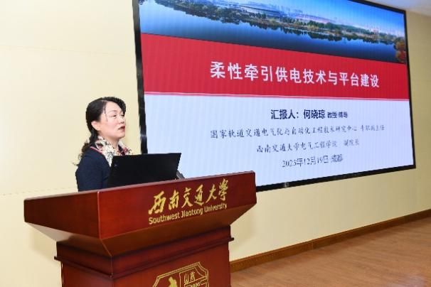 随后,中国铁设副总工程师、全国工程勘察设计大师蒋先国作题为“数字孪生牵引供电系统探索”的学术报告;俄罗斯工程院外籍院士、中心常务副主任陈维荣作题为“氢能零碳轨道交通发展现状与思考”的学术报告;中铁二院电化院总工程师邓云川作题为“川藏铁路牵引供电科研进展及其新藏铁路用能系统的思考”的学术报告;中心专职副主任、电气工程学院副院长何晓琼作题为“柔性牵引供电技术与平台建设”的学术报告。