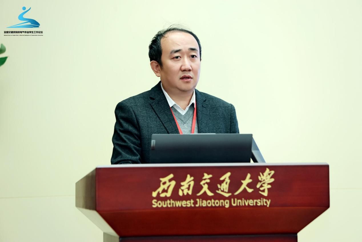 西南交通大学电气工程学院院长何正友教授从学院历史、学科建设、科研水平等方面介绍了学院发展情况。站在新的历史起点,何院长表示,未来学院将继续扎根轨道交通电气化事业,紧密服务于国家重大需求,继续加强学工队伍的建设,促进学工形式多样化发展。他提到,首届全国交通类院校电气专业学生工作论坛是一场思想的盛宴,一次发展的契机,能够更好地推进新时代大学生思想政治教育工作,通过培育时代新人切实提高服务国家、地方、行业重大需求和经济主战场的能力,为国家经济建设、社会发展做出更大贡献。