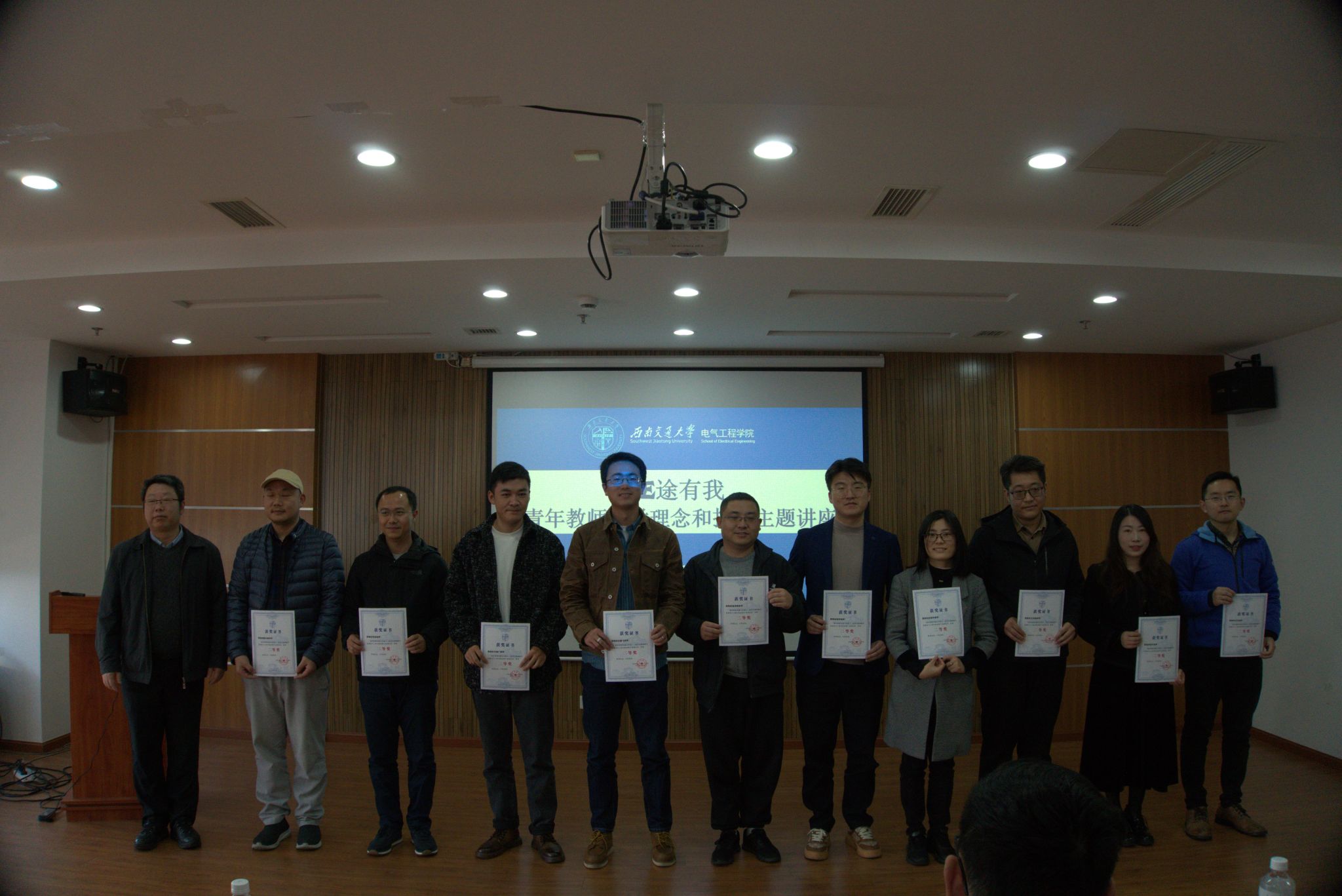 活动伊始,王斌书记代表学院为教学竞赛一等奖获得者沙金、艾竞、关金发、廖凯、王青元、冯玎老师,二等奖获得者孙鹏飞、张晓平、魏文斌、苟斌、林圣、韩莹、王东阳、韦晓广、杨平、杨泽锋、王玘老师与其他获奖老师颁发证书,现场气氛热烈,爆发出阵阵掌声。