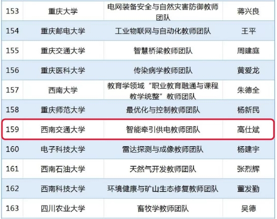近日,教育部印发通知公布第三批“全国高校黄大年式教师团队”创建示范活动入围名单,由西南交通大学电气工程学院高仕斌教授牵头建设的智能牵引供电教研团队成功入选。