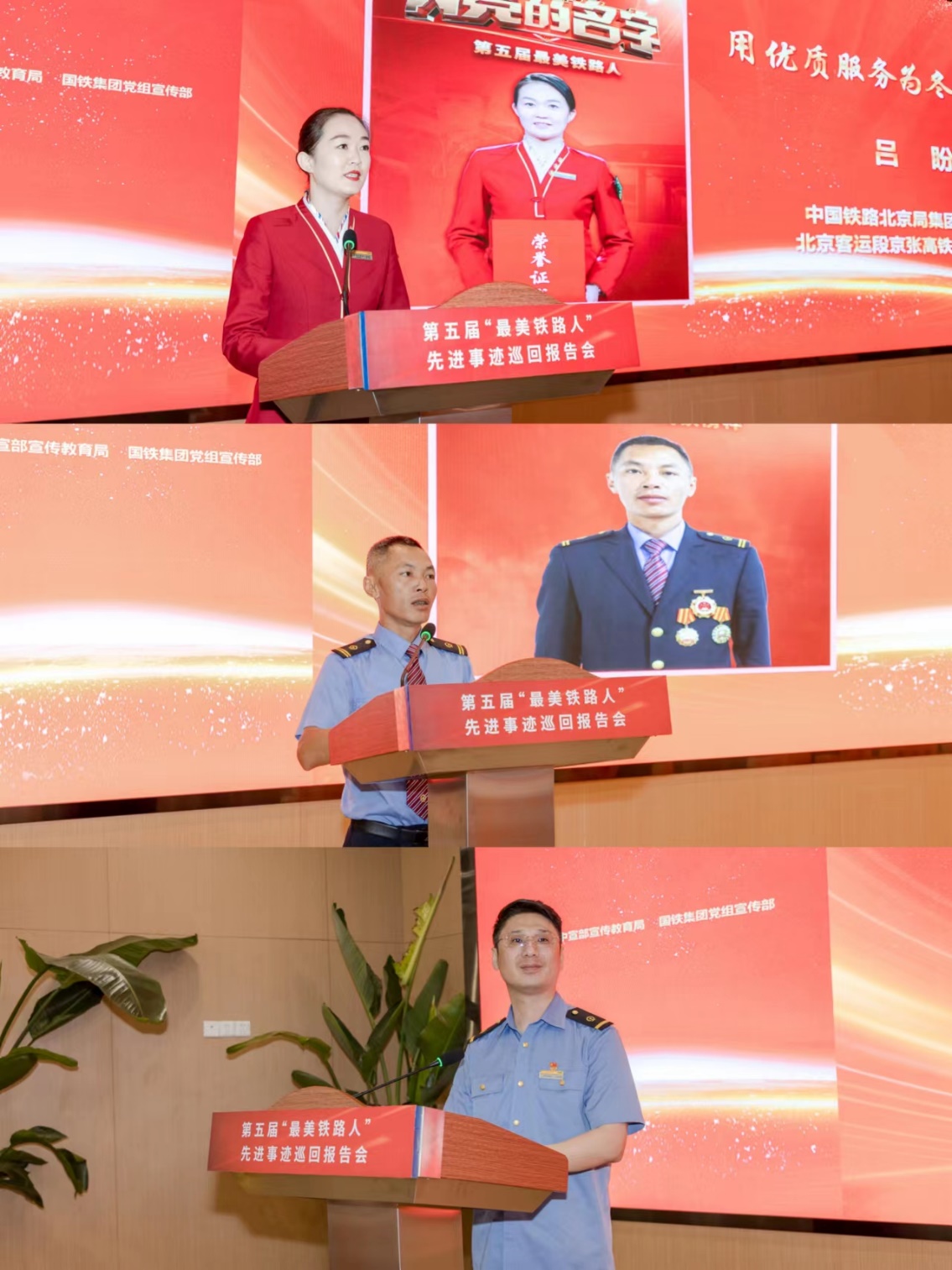 本次报告团由七人组成,其中五位是“2022年最美铁路人”、两位是中国铁路成都局集团有限公司涌现出的“新时代成铁榜样”。中国铁路北京局集团有限公司北京客运段京张高铁车队列车长吕盼以“用优质服务为冬奥添光彩”为题,讲述了她在北京冬奥会、冬残奥会期间向世界展现中国高铁服务的事迹。吕盼表示,要像一名出征的战士,精神抖擞,英姿飒爽,以最好的状态服务好每一位旅客。并且尽最大的努力,展示好中国铁路的形象,用优质服务为冬奥添光彩。