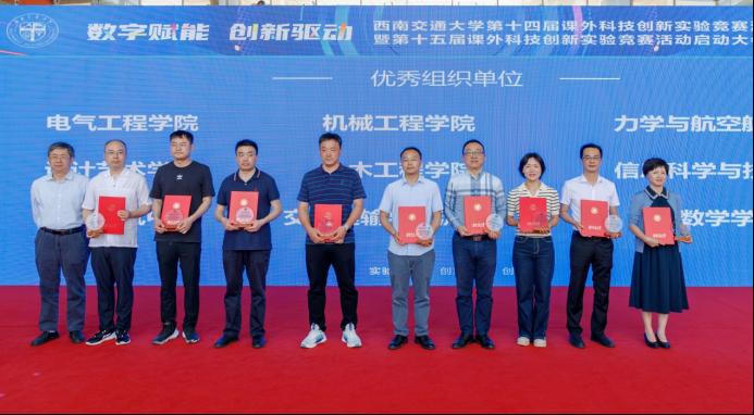 2023年4月19日,由资产与实验室管理处主办的西南交通大学第十四届课外科技创新实验竞赛活动表彰暨第十五届课外科技创新实验竞赛活动启动大会在西南交通大学犀浦校区图书馆落下帷幕,我院师生在本届竞赛活动中表现优异,共获金奖作品1项、银奖作品3项、铜奖作品7项以及优秀奖9项,其中由邱忠才老师指导的“基于红外系统与图像处理实现浅静脉成像装置”作品获得金奖,邱忠才、李勇、潘育山等9位老师获评优秀指导教师,学院获优秀组织奖。
