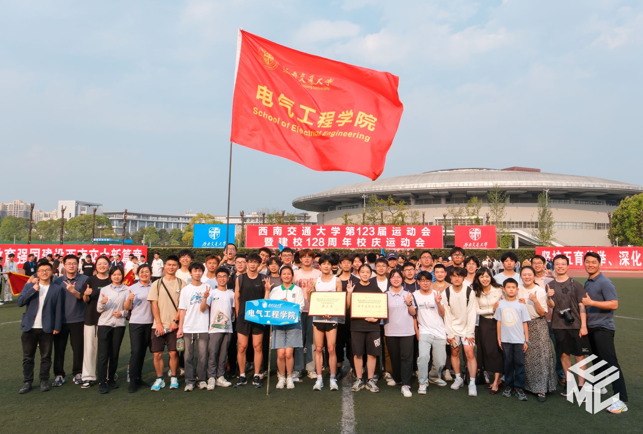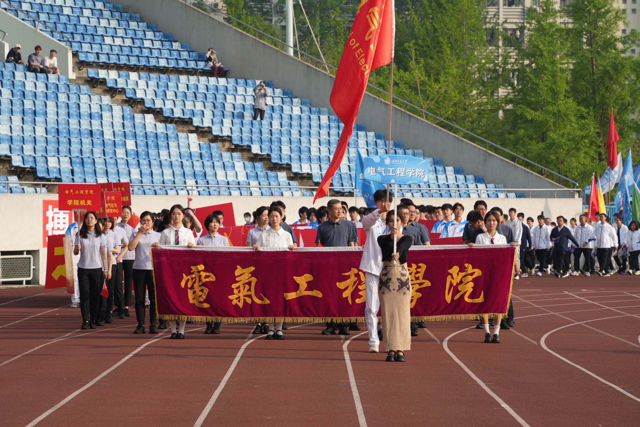 2024年4月12日至13日,西南交通大学第123届运动会暨建校128周年校庆运动会在犀浦校区北区体育场隆重举行,在本次校运会中,电气学院荣获学生甲组团体总分第三名和“体育道德风尚奖”。