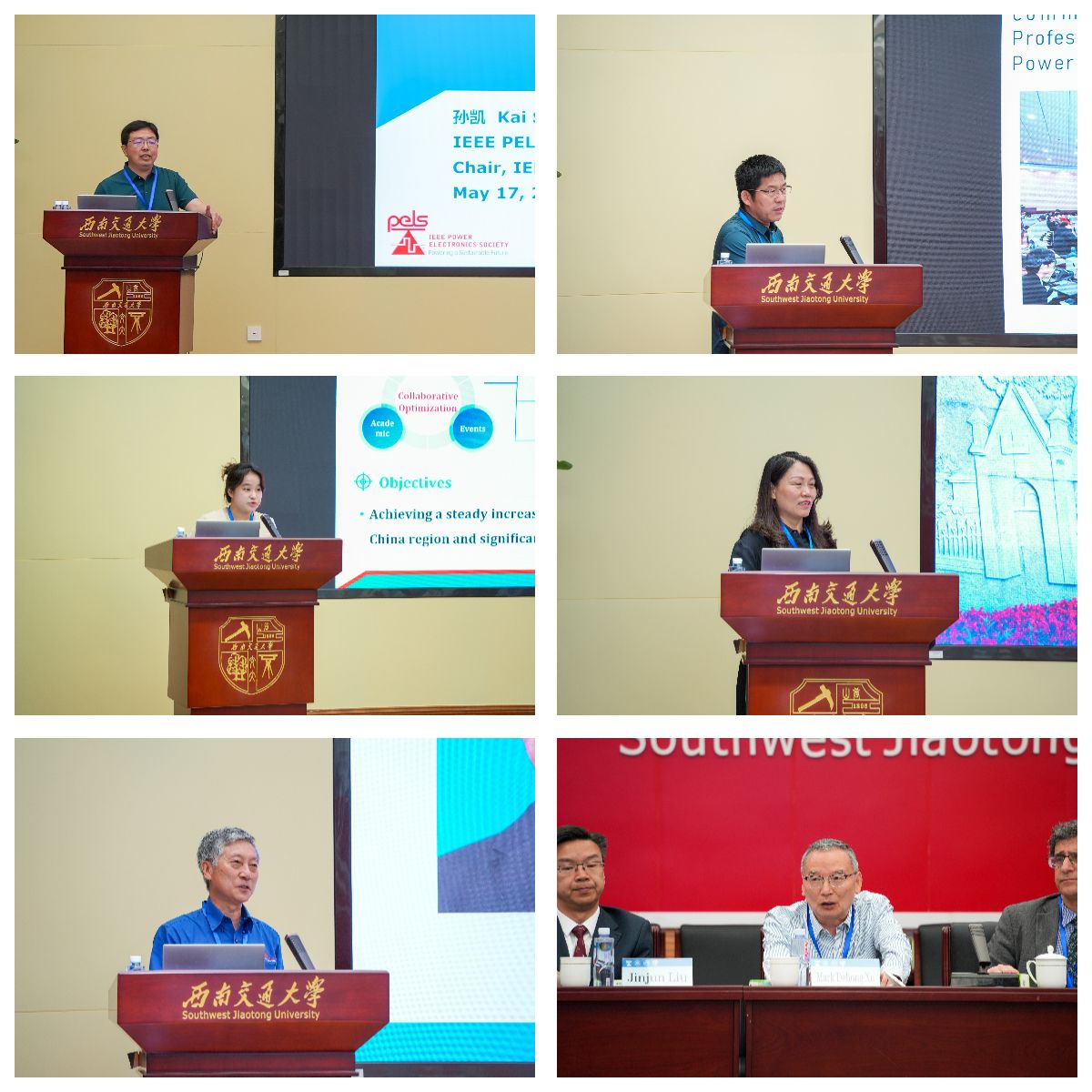 会议最后进行主题汇报和交流讨论,IEEE PELS China会员委员会主席孙凯、西安交通大学教授王来利、IEEE PELS China学生分会主席陈泓佚、西南交通大学电气工程学院副院长何晓琼分别进行了精彩的汇报。最后,IEEE PELS 前任主席Liucheng Chang主持交流讨论环节,来自三个学会与西南交通大学的专家学者们针对科学研究、行业发展、合作交流与人才培养等内容进行了深入地研讨。