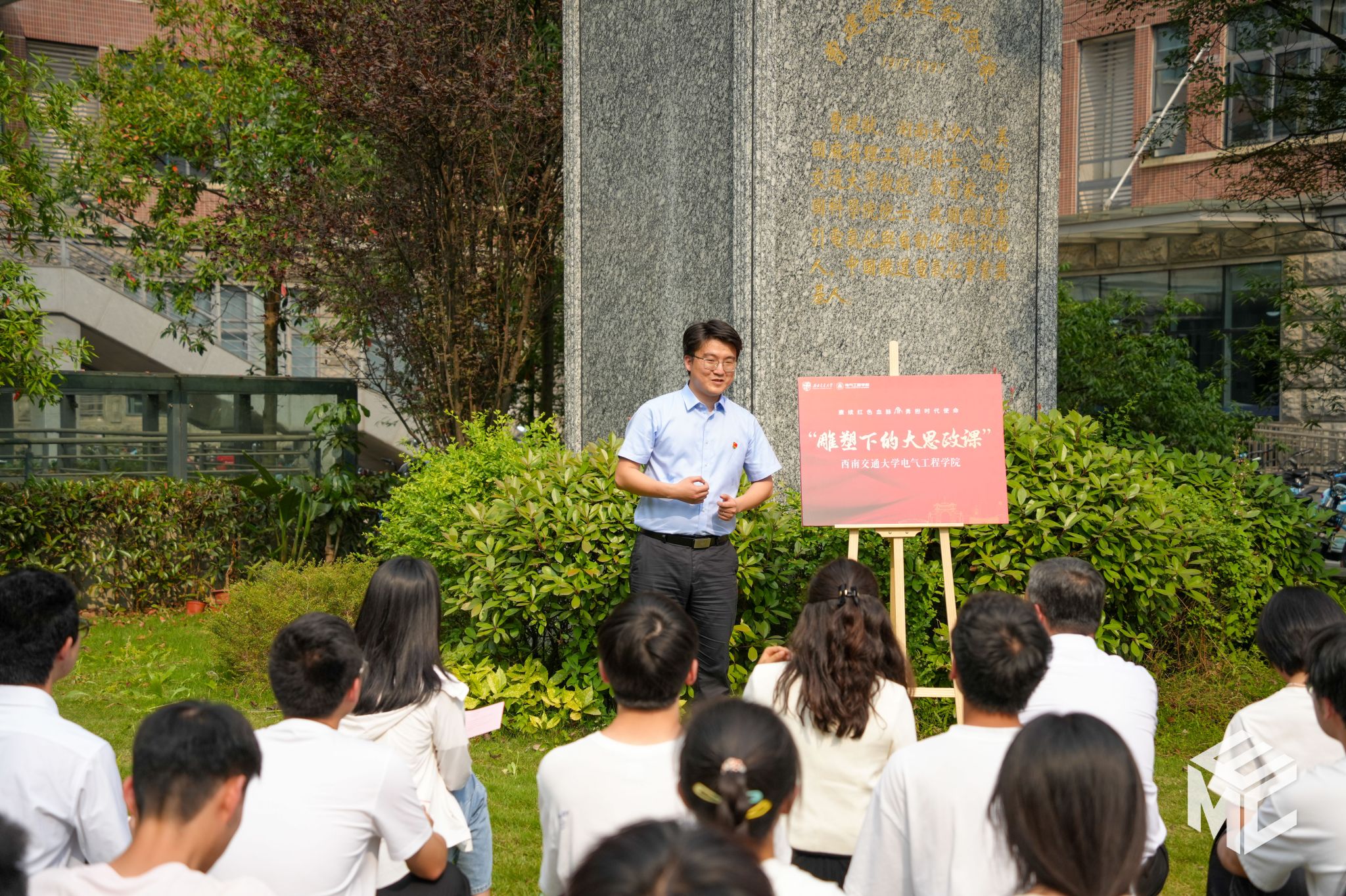 “大思政课”之大,大在是一门社会大课、一项系统工程。电气工程学院将进一步结合党纪学习教育、党支部特色活动、实习实践,把思政小课堂和社会大课堂结合起来,常态化开展“雕塑下的大思政课”。善用“大”资源、汇聚“大”合力,从校园内以曹建猷院士为代表的科学家精神主题大思政课,拓展到以红军长征纪念碑为代表的伟大建党精神主题大思政课,深入到聚焦绿色低碳能源转型以轨道交通和新型电力系统为代表的行业大思政课,再到师生开展社会实践真正把论文写在祖国大地上的新时代乡村振兴大思政课,逐步引导学生走出课堂,走进社会,感受中华优秀传统文化、革命文化和社会主义先进文化。坚持将大思政课建设与党的创新理论武装同步推进,推动学生更好了解国情民情,坚定理想信念,以“大思政课”拓展三全育人新格局,努力培养更多让党放心、爱国奉献、担当民族复兴重任的时代新人。