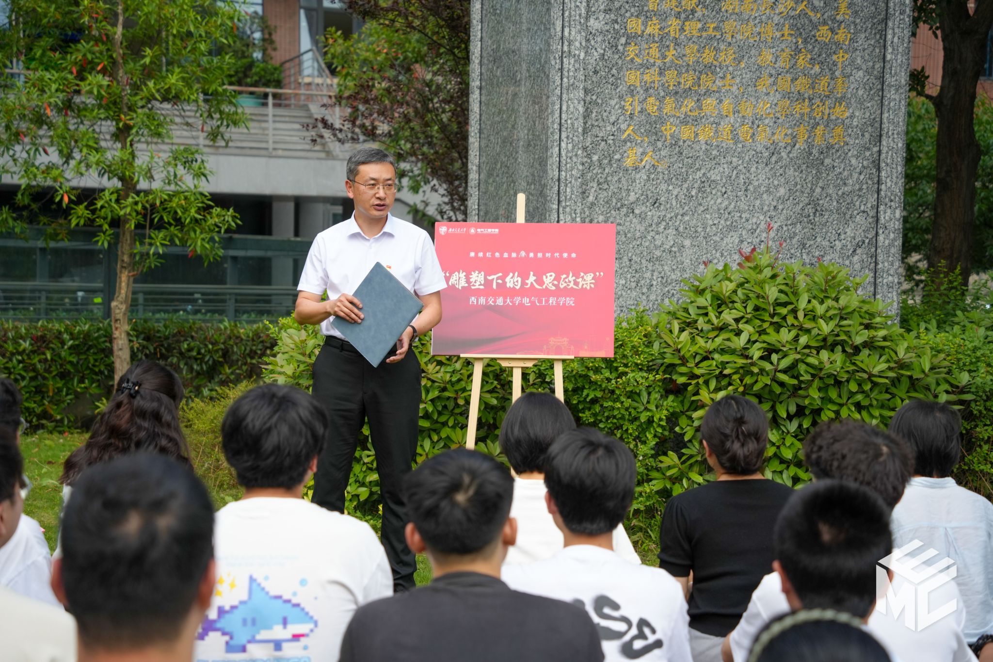 近年来,西南交通大学电气工程学院党委深学细悟习近平总书记重要讲话重要指示精神,在思政课建设上,构建“专业+思政”的大思政格局,弘扬以伟大建党精神为源头的中国共产党人精神谱系,讲好“交通强国故事”和“科学家故事”,进一步丰富先锋电气、“赤电”文化的内涵,把思政小课堂和社会大课堂结合起来,形成思政教育新方法。电气工程学院创新开展“雕塑下的大思政课”,让雕塑“开口说话”,充分发挥校园文化育人作用,用好雕塑内涵资源,讲好科学家故事,学习科学家精神,感悟科技创新魅力,实现思政教育浸润人心。