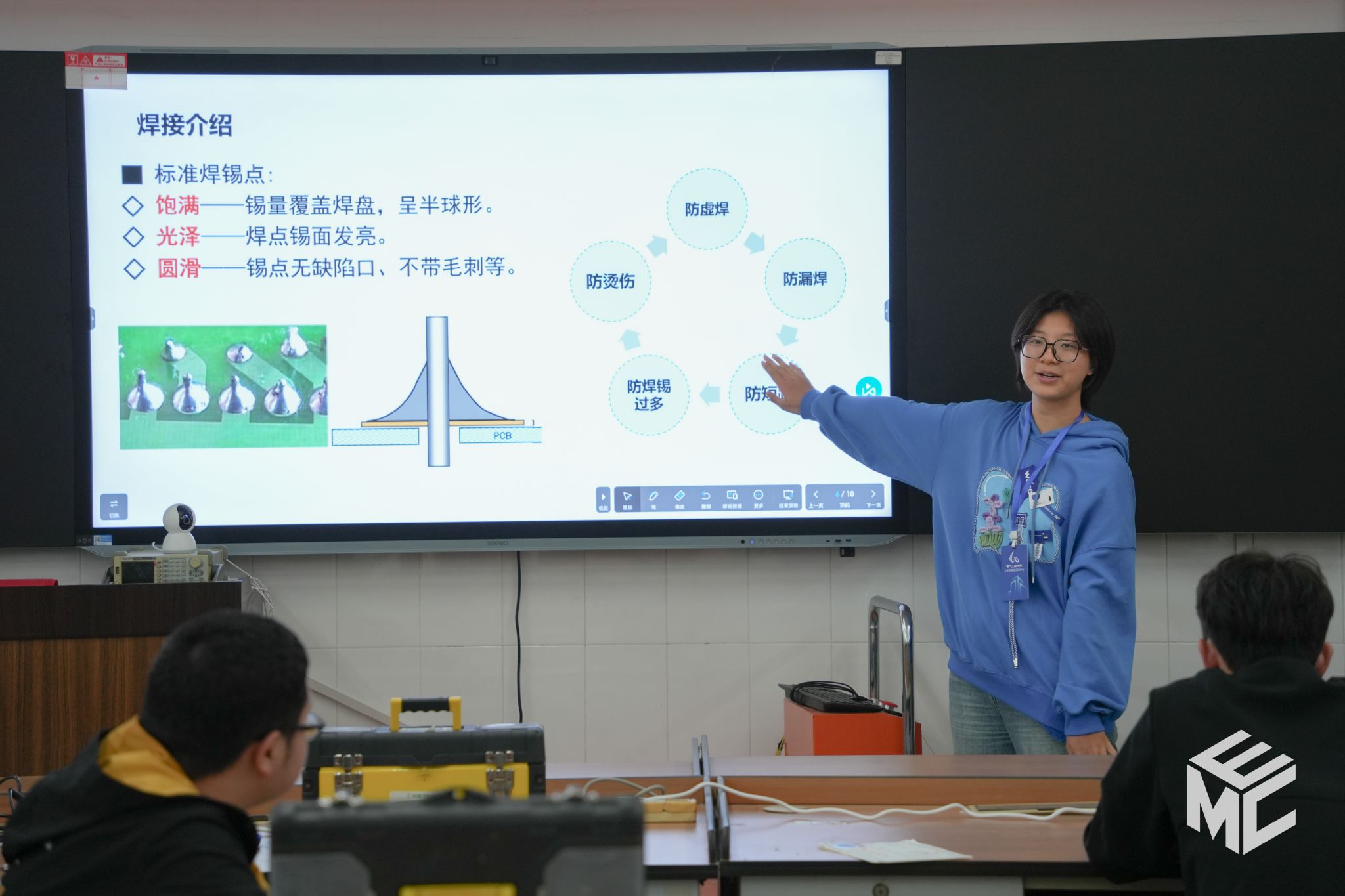 课程的最后是科创实践体验环节。在电气工程学院大学生科技活动中心工作人员的指导下,同学们亲自动手学习焊接技术,感受着劳动创造的乐趣,也更加深刻地理解了“创新无限”的真谛。科技创新,从来都不是纸上谈兵,而是要脚踏实地,从点滴做起!