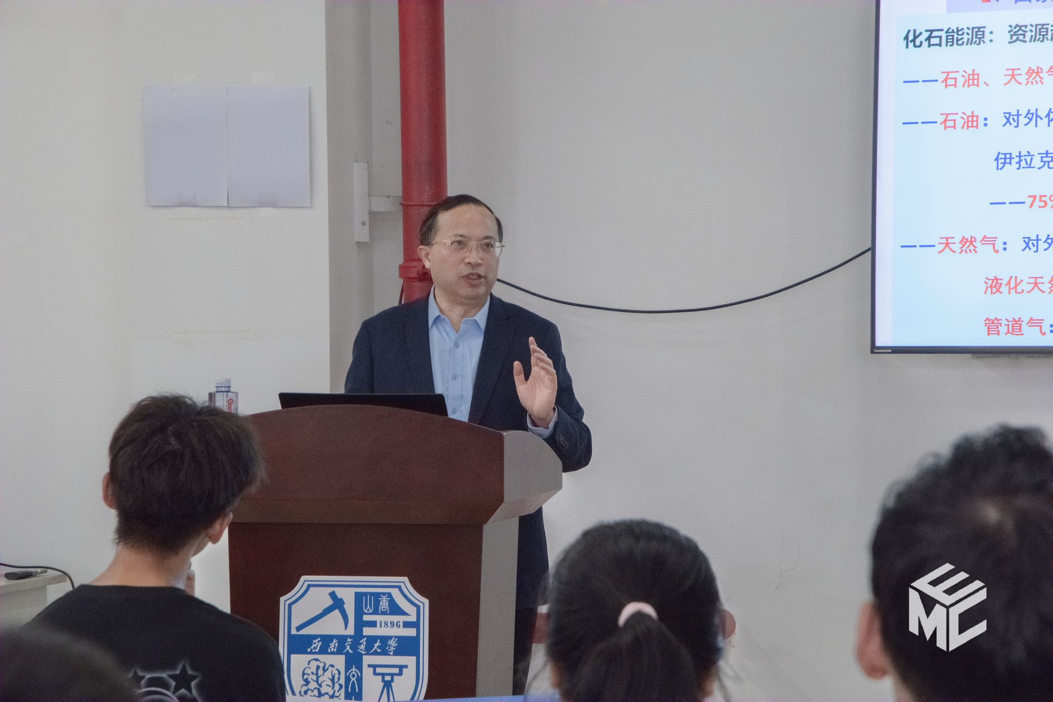 2024年10月11日下午16时,课程在犀浦校区举行。第一讲为新能源知识讲座,特邀西南交通大学氢能及储能技术研究院院长陈维荣教授担任主讲嘉宾。陈维荣教授以“‘双碳’目标下氢能在轨道交通中的应用研究”为题,结合自身丰富的研究经验和前沿学术成果,深入浅出地讲解了新能源研究背景、氢能工作原理及关键技术、研究成果及应用现状等内容,并与现场同学就氢能源的制造、运输与应用等问题展开互动交流。现场气氛热烈,掌声不断,同学们纷纷表示受益匪浅。