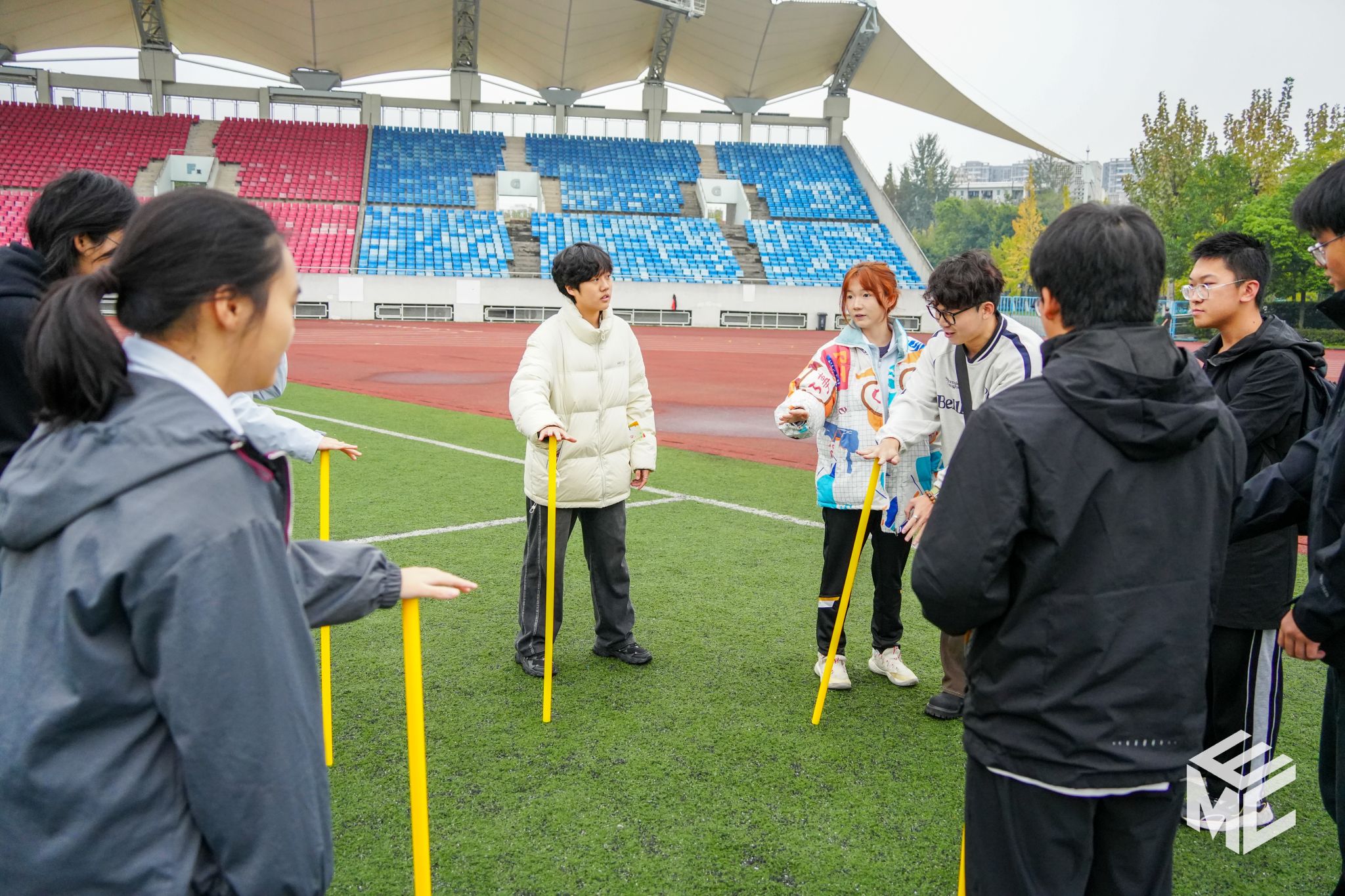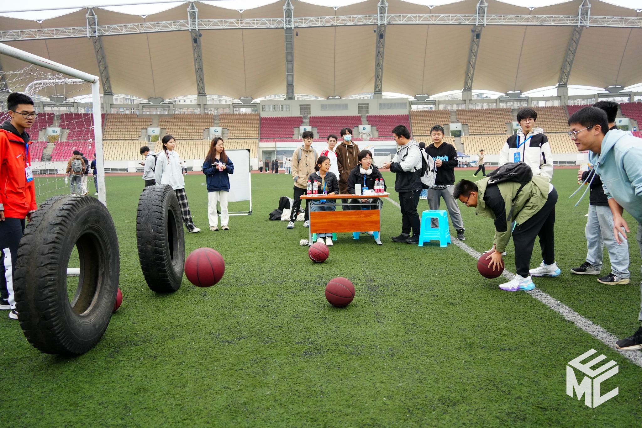 启动仪式结束后,师生们积极参与趣味项目体验环节,现场气氛热烈。活动共组织了“球”稳大作战、击地入轮、百步穿杨、雷区取水、绳舞飞扬、足球九宫格与不倒森林共七个趣味项目。师生们组成团队,通力合作,共同享受体育运动的乐趣。