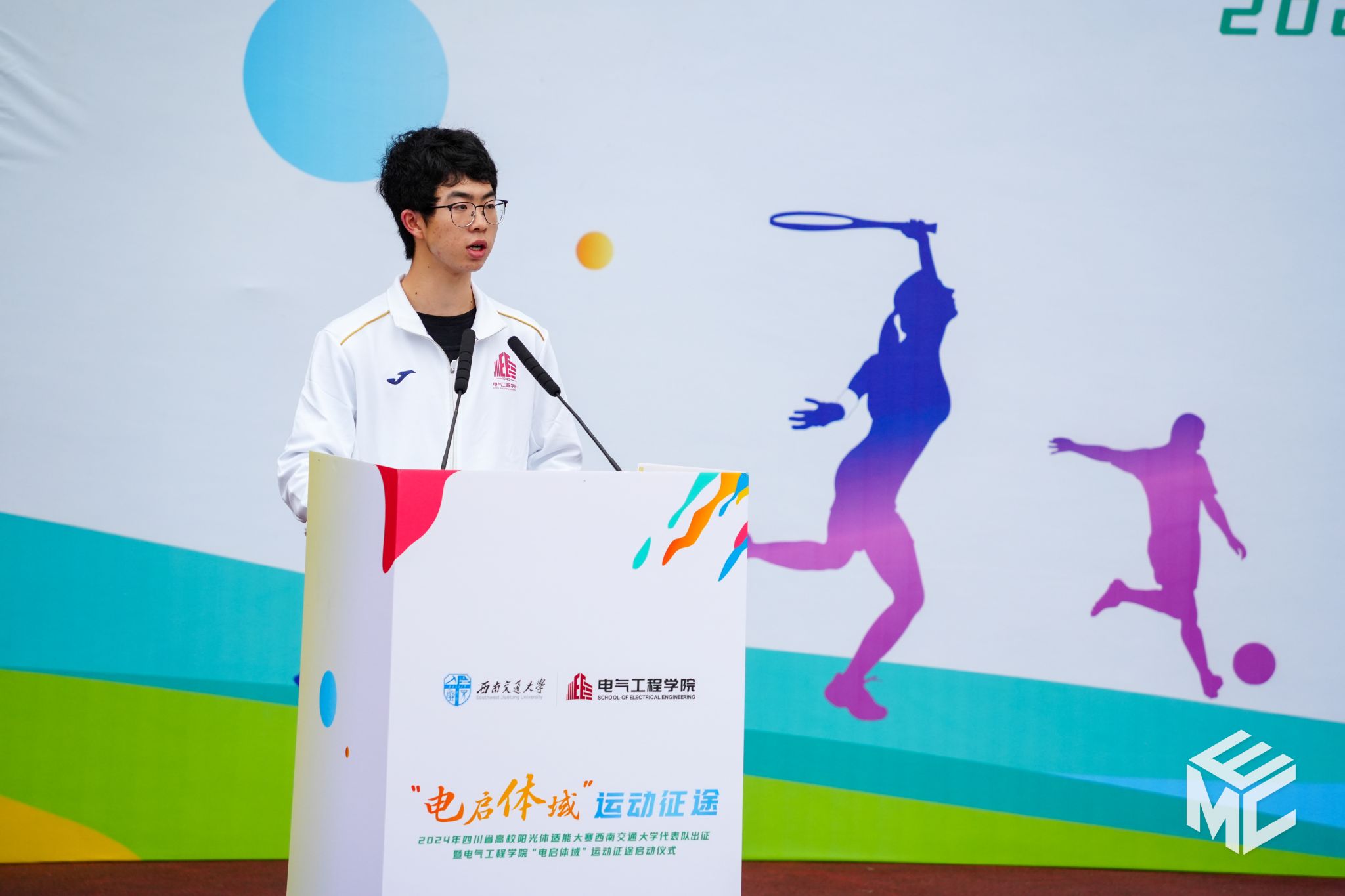 运动锤炼体魄,青春奋发启航。在一阵阵欢声笑语与加油鼓舞声中,学院师生在“电启体域”运动征途中挥洒汗水、稳步前行。预祝8位运动员代表在2024年四川省高校阳光体适能大赛中取得优异成绩,希望同学们积极响应马光同院长的倡议,在运动中养成良好习惯,涵养阳光心态,磨练坚毅品格,用青春激荡起强国建设、民族复兴的澎湃春潮。