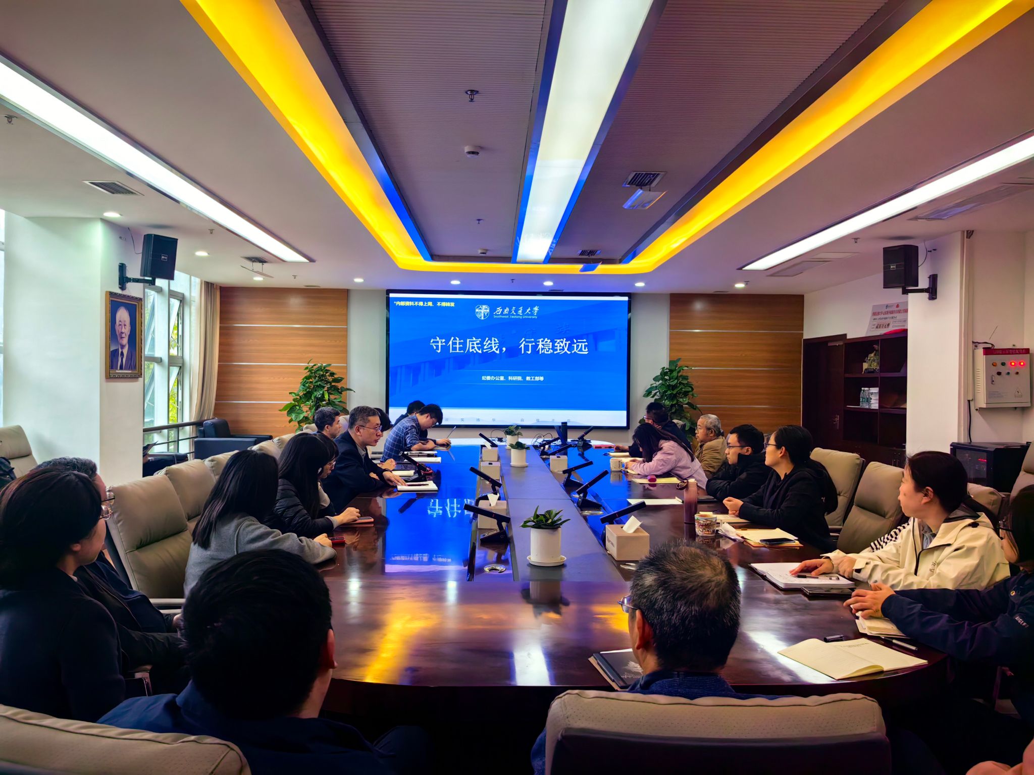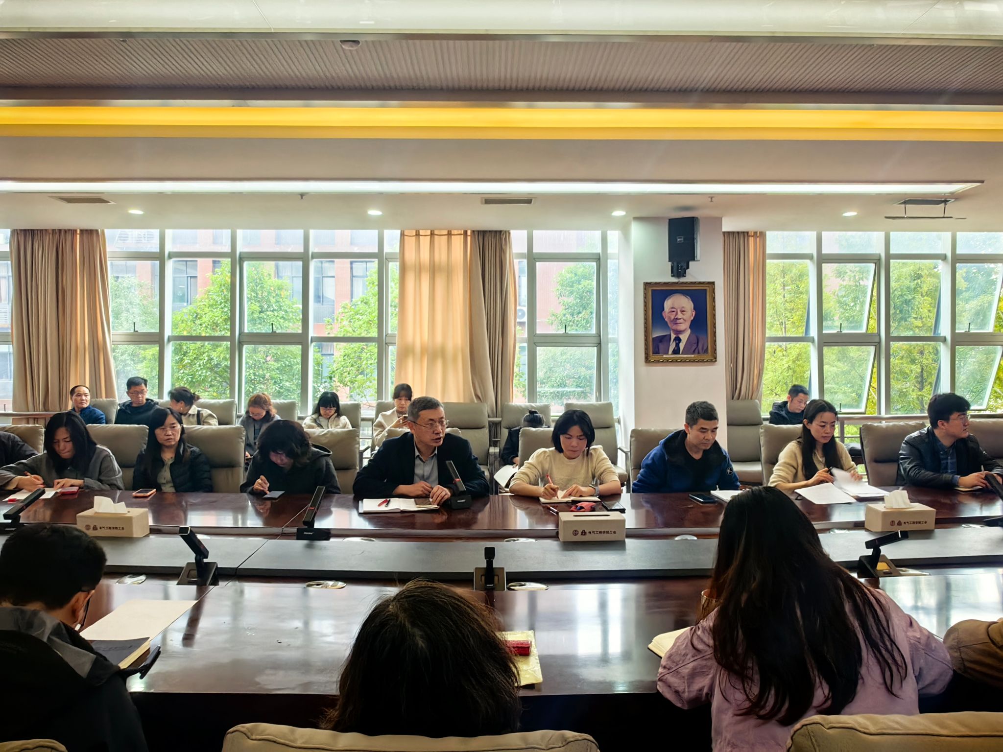 2024年11月14日下午,电气工程学院面向全体教职工开展师德师风警示教育,院长马光同作题为《进一步加强科研诚信和学术道德建设,确保行稳致远》主题宣讲,会议采用线上线下相结合的形式,学院领导干部、各系主任、副主任和机关管理人员集中在主会场,各系由党支部组织在各分会场听取宣讲,大会由学院党委书记王斌主持。