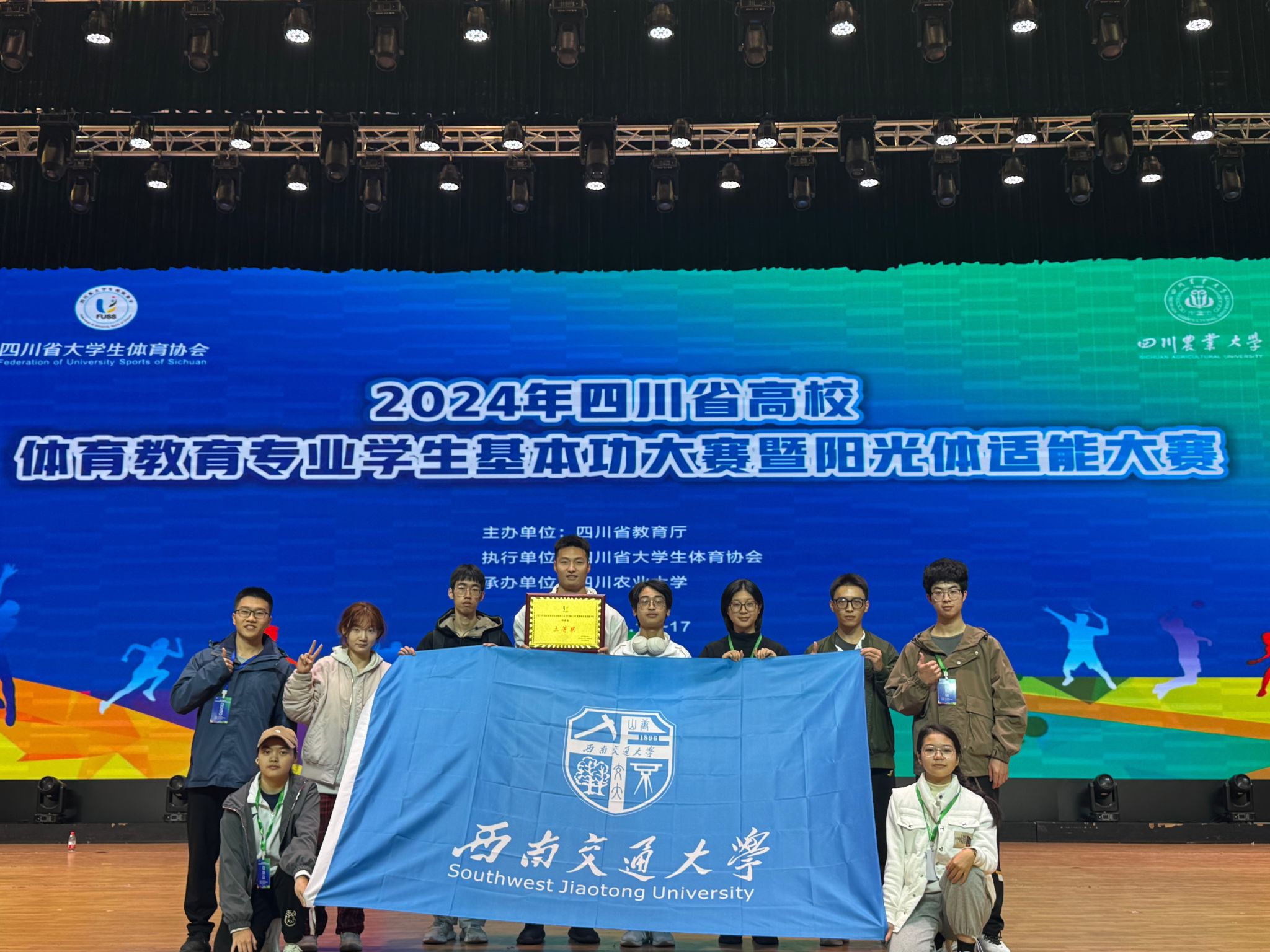 2024年11月13日,我校首次组织学生参加四川省高校阳光体适能大赛。由电气工程学院辅导员邹伟豪老师担任教练,罗霁轩老师担任指导老师,本科2023级贺富康、刘远航、肖印豪、周煜涵、杨楠、肖棵尹、易慧、高晓艳8名同学组成的西南交通大学代表队在比赛中表现优异,斩获团队三等奖。