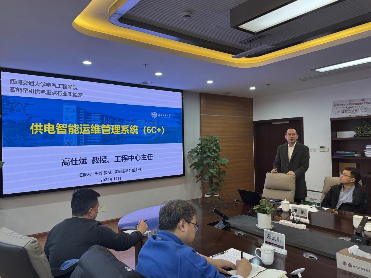 智能牵引供电铁路行业重点实验室常务副主任于龙汇报了供电智能运维管理系统(6C+)的研发情况。实验室持续推进供电运维数字化、智能化,在广州局运用供电智能运维管理系统,通过数据中心、检测监测、设备维修、健康管理、辅助决策、考评管理六大模块实现检测维修和管理决策。下一步,实验室将围绕6C+数字孪生、6C+低空运维、6C+智能维修、6C+智慧决策、6C+能源管理等项目进行升级。