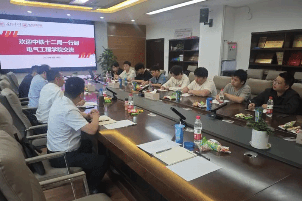 2025年5月14日下午,中铁十二局党委干部部副部长王喜波、养护公司党委干部部部长杨炫锋等一行走访西南交通大学电气工程学院,并于犀浦校区X10212会议室开展“实干创业”定制班座谈交流。电气工程学院党委副书记邢晓鹏、2026届本科生辅导员占祥文、孙海洋及学生代表参加座谈。