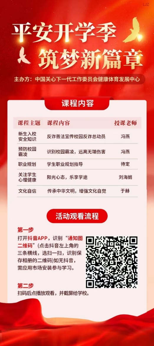 (2)组织每位同学观看“平安开学季,筑梦新篇章”安全教育课程。(收看指南见下图)