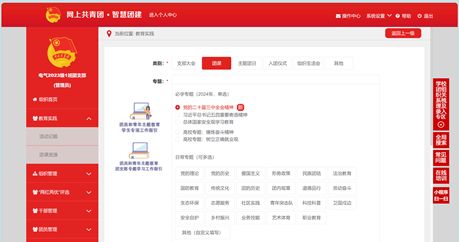 (3)各班团支书结合“智慧团建”平台“教育实践——团课资源”,组织带领全体学生共同学习党的二十届三中全会的相关内容。