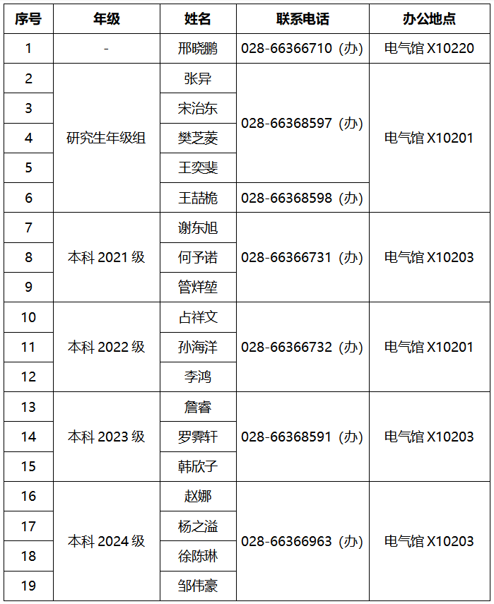 电气工程学院关于学生工作组办公地点调整的通知