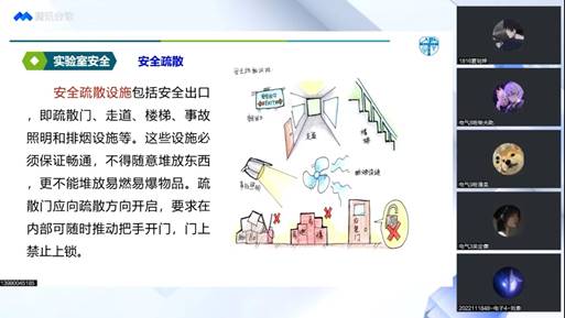 为培养2022级新生实验室安全意识,加深学生对实验室安全的了解,增强新生实验室安全意识和事故防范能力。9月15日晚19:00点,电气工程学院召开了2022级新生实验室安全教育讲座。根据学校疫情防控政策要求,讲座以线上方式进行。学院全体2022级本科生和研究生新生参加。