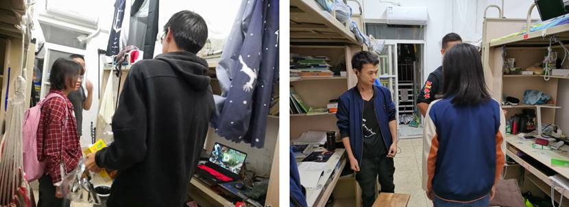 学生工作组辅导员以年级组为单位走访了学院本研学生宿舍,与学生深入交流,了解同学们学习和生活上遇到的困难,对走访时不在宿舍的同学逐一了解其具体去向。