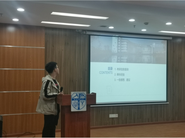 最后国勇健向大家介绍了一些考研信息获取的途径。他表示,需要注意的关键信息很多,包括招生简章、考试要求、报名公告、招生人数、考试科目、参考书目、历年分数线、报录比、专业课难度、复试难度等等,这些关键信息的获取十分重要。最后,他讲到了考研复试准备的一些要点,包括弄清复试专业课范围,学会取舍、向考上的学长学姐取经,询问相关QQ群的同学、放平心态、适度放松、时刻关注官网动态,避免错过信息、回答问题时不要紧张,避免冷场等等。