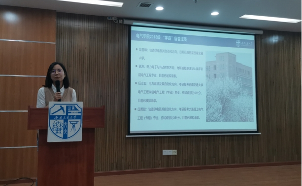 2022年4月21日19时,电气工程学院2019级“研”出必行——学霸宿舍经验交流分享会在犀浦校区X10832举行。本次活动邀请了学院2018级的段君璋、任志宏、谢涛以及国勇健四位来自同一宿舍的同学进行考研经验交流分享。活动由2019级辅导员詹睿老师主持。