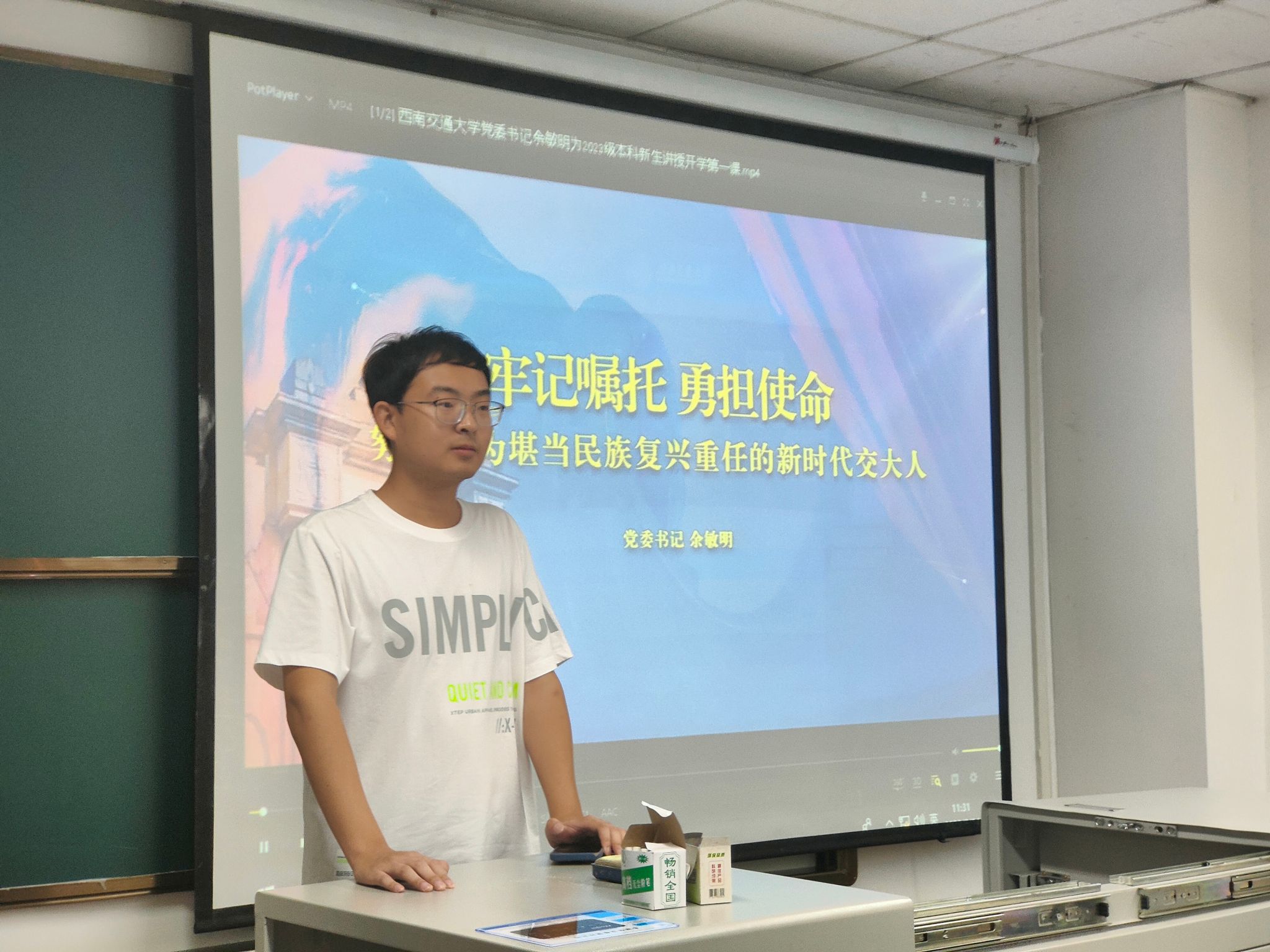 余敏明书记首先代表学院党委向新同学表示热烈的欢迎,祝贺各位新生在经历多重的考验、漫长的等待后,终于迈进大学的校门,踏上人生新的起点。本次思政课从校情校史出发,立足时代背景,分别以“筚路蓝缕、薪火相传”、“传承红色基因,赓续红色血脉”、“严谨治学、严格要求”、“肩负使命、追求卓越”为主题介绍了交大的百年发展历程,讲述了我校建校历史上杰出校友的感人故事,强调了我校铸就育人特色鲜明的“双严”办学的优良传统,论证了我校在中国轨道交通事业尤其是高铁事业的重大贡献,并在最后祝愿也希望我校成长的学子们能够传承历届杰出校友的优良品质,做到眼里有光,心中有梦,为我国事业发展以及国家建设贡献出自己的一份力量。