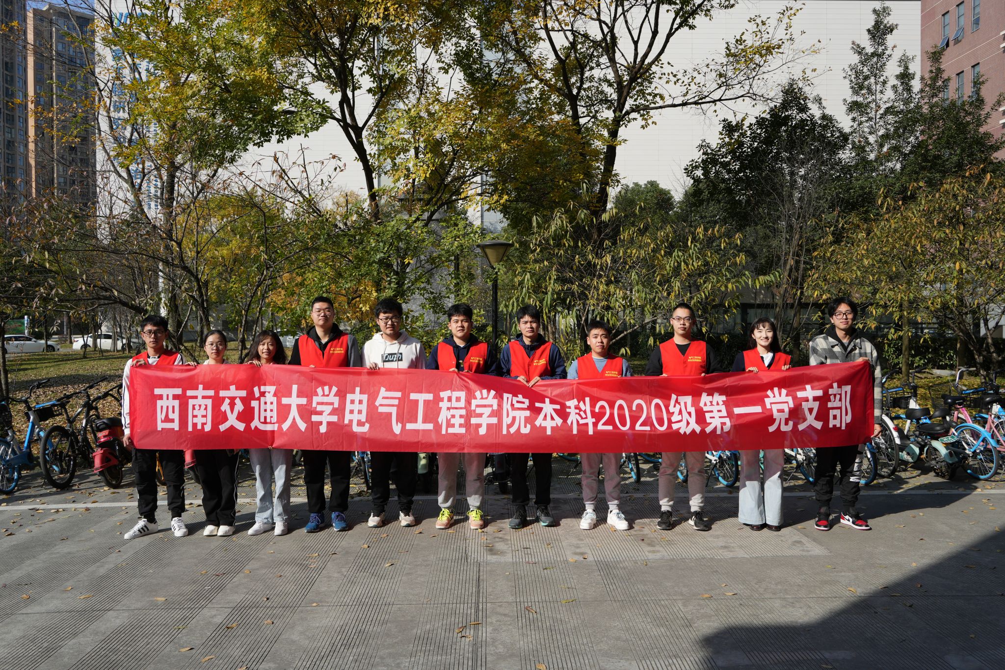 为持续深入学习宣传贯彻党的二十大精神,坚持不懈用习近平新时代中国特色社会主义思想凝心铸魂,2023年11月13日至19日,西南交通大学电气工程学院本科2020级第一党支部和第五党支部在电气馆周边开展“单车摆放整理”志愿服务活动,以“赓续红色血脉,践行使命担当”为主题开展了内容充实、形式丰富、意义深远的党支部特色活动,电气工程学院本科2020级第一党支部和第五党支部各党员、预备党员、发展对象和入党积极分子在志愿实践中彰显青春活力、发扬奉献精神、争做时代好青年。