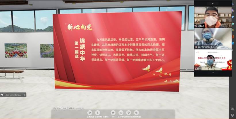 习近平总书记在党的二十大报告中指出,坚持和发展马克思主义,必须同中国具体实际相结合、同中华优秀传统文化相结合。为了让同学们见证马克思主义在中华大地落地生根并不断丰富发展产生的重大成果,深入了解马克思主义生态观,学习小组在线上通过VR技术参观了“新心向党——喜迎党的二十大主题摄影展”。随着电脑莹屏的切换,一幅幅镌刻着祖国大美江山的摄影作品映入眼帘,从风光旖旎的江南水乡到雄伟壮阔的西北边疆,每一处都是瑰宝,每一处都是荣耀。同学们目不转睛地欣赏着,不仅是感慨于摄影师带来的视觉盛宴,更是感恩于近年来党和国家在生态文明建设等方面做出的巨大努力。