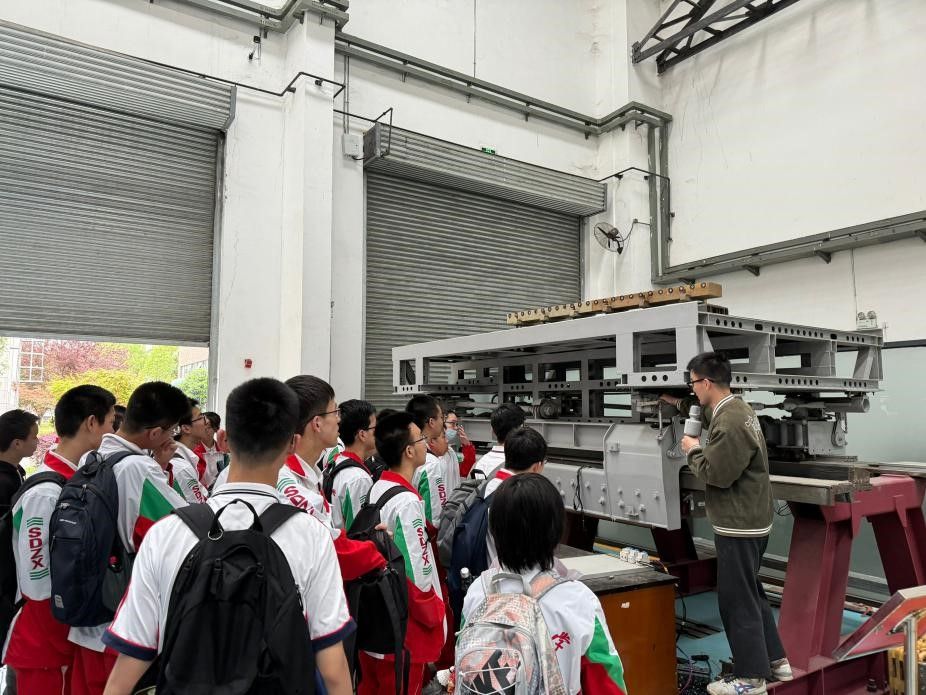 随后,师生代表们来到了交大磁浮实验中心,研究生学长学姐从中心历史、研究成果和未来发展趋势等多个方面介绍了西南交通大学在磁浮领域的科研情况。“如何让列车浮起来,如何让列车走起来”的疑问在学长学姐们的解释梳理和实际操作中逐渐得到了答案,师生代表们爆发出阵阵掌声。交流讨论环节结束后,本次参观活动圆满落下帷幕。