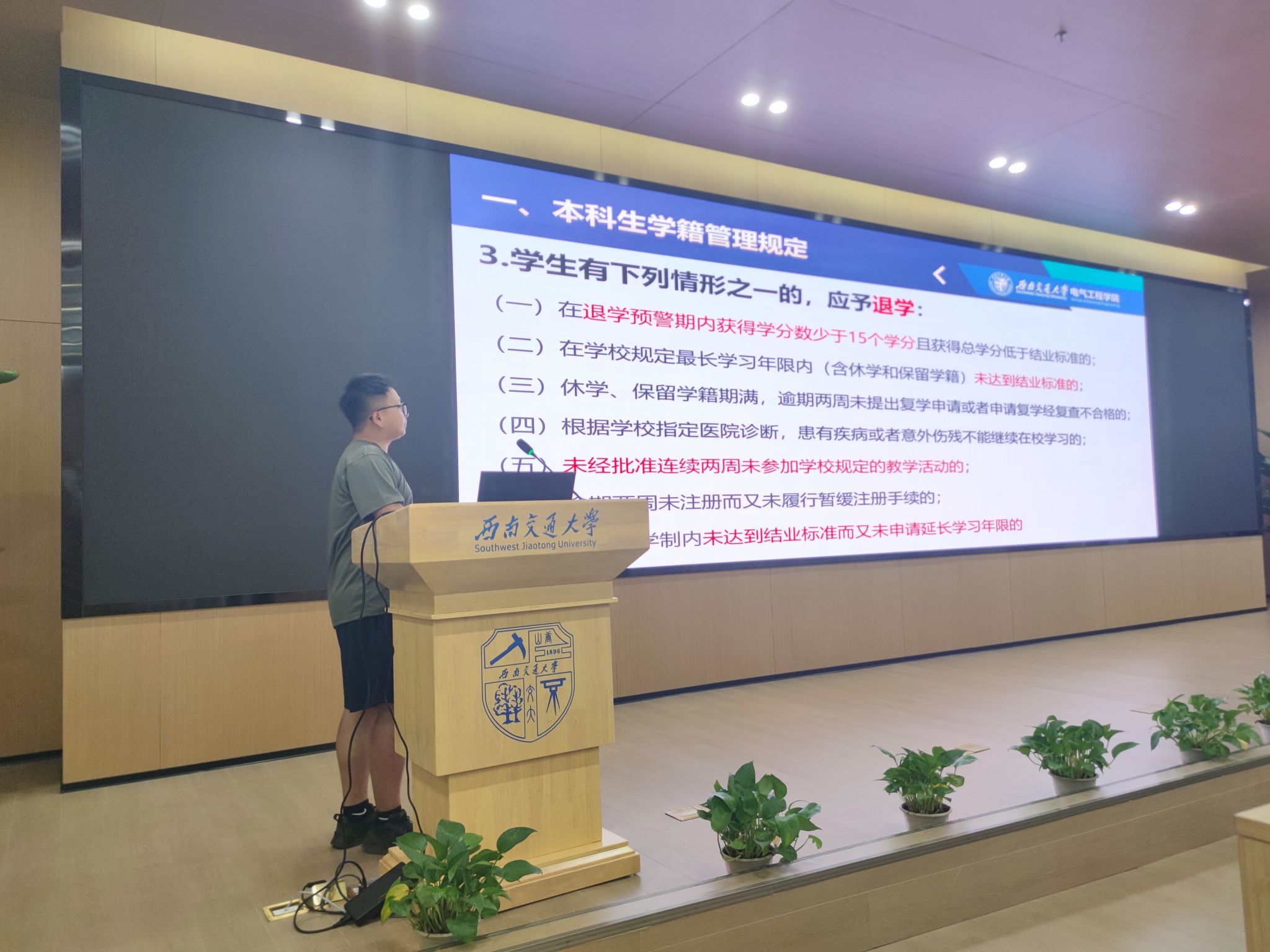 【本科新生入学教育三】电气工程学院本科2024级组织新生学习西南交通大学本科生相关管理规章制度