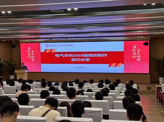 接下来,针对同学们简历制作中存在的一些问题,谢东旭老师以实际案例为同学们提供了简历制作的技巧和注意事项,并发布了“电气本科2025届毕业生简历提升计划”,呼吁同学们早日制作、完善简历,为踏入求职道路做好铺垫。
